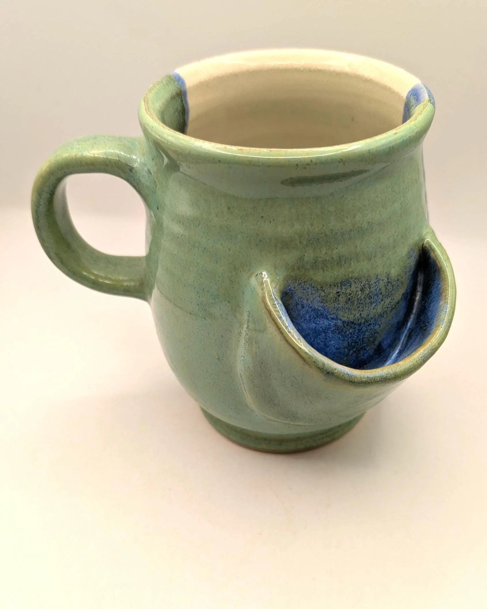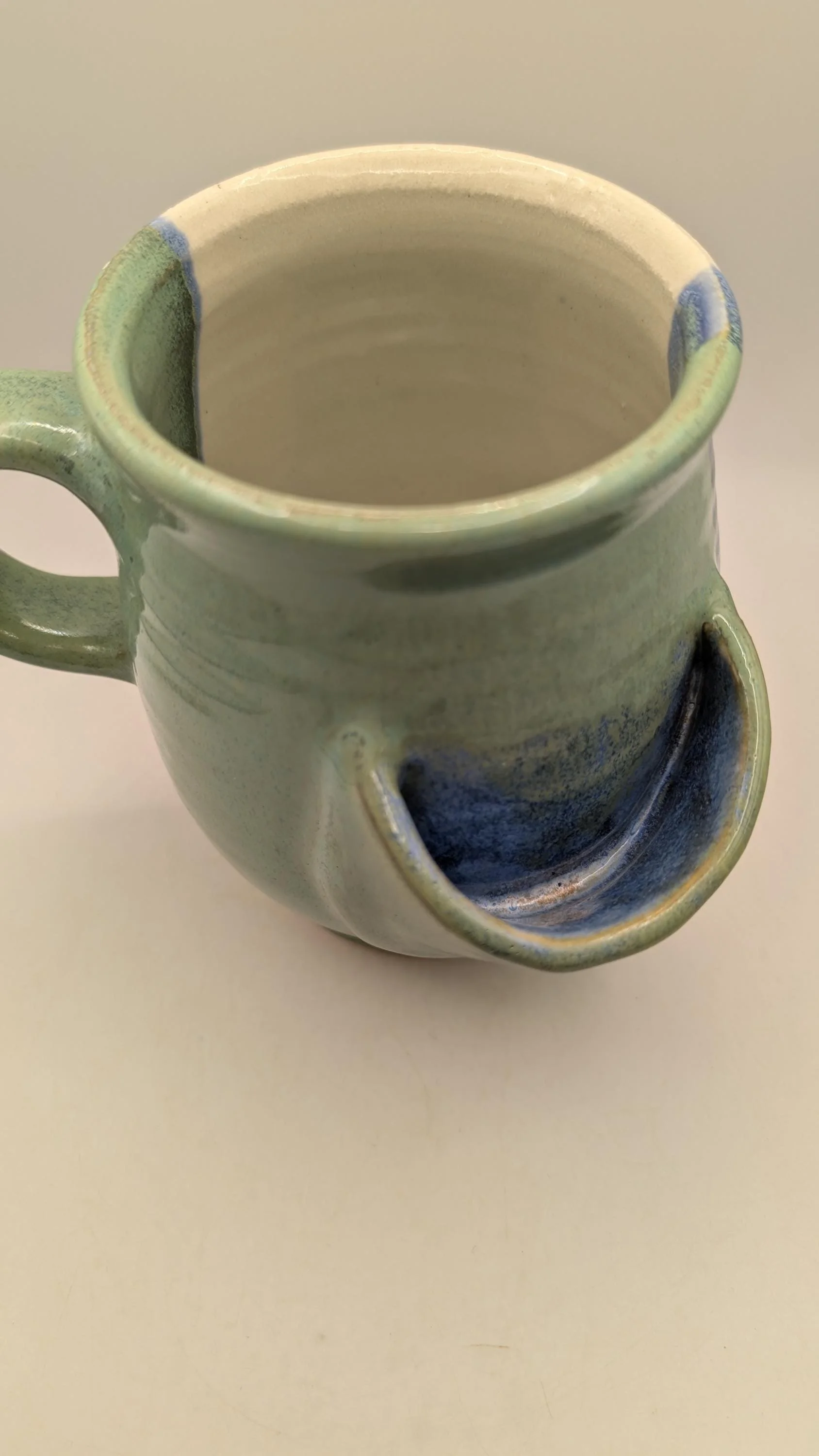 Stop wondering where to put your soggy tea bag. This wheel thrown ceramic mug features a built-in side pocket designed to hold your tea bag or infuser once your brew is just right.